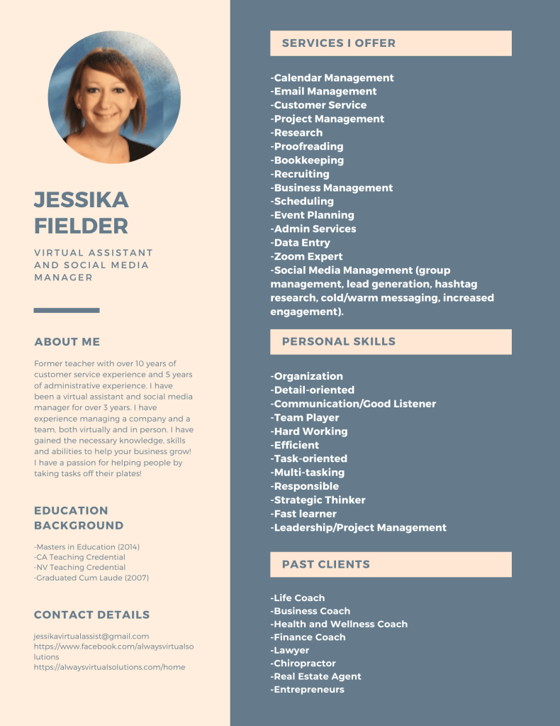 MORE ABOUT JESSIKA: I used to be a teacher, but I have been a virtual assistant and social media manager for the past three years. I absolutely love being able to help people remotely! I’m also currently starting my life coaching journey.