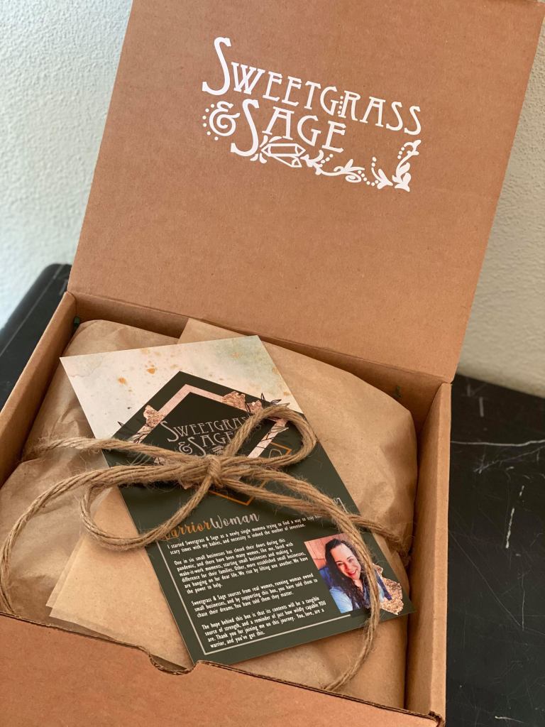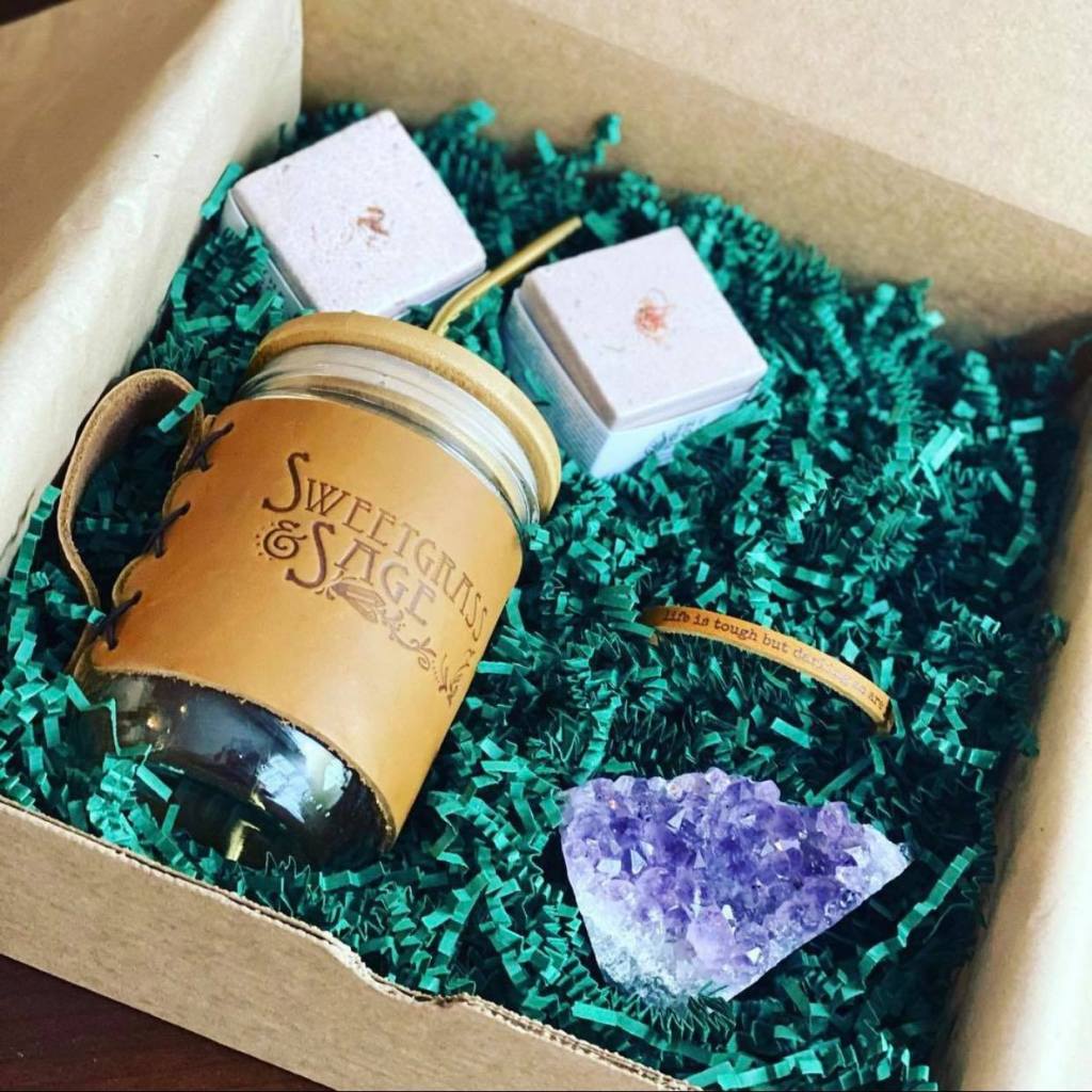 A: Sweetgrass & Sage Box has different business model from others because I find the traditional subscription box model to be a little predatory. Integrity is super important for me. I believe, whole heartedly, in the value of artisan quality work, and whereas most of the big name subscription boxes make the businesses pay to be in the box AND provide their product for free, I pay for the product, and my promotion of the woman-owned small businesses I work for is free. They get a little stimulus from box sales, and new people to try their product. The box recipients get a great deal on things they actually want, and each piece is intended to be something they can have as a tangible reminder of their own inner strength. I’m focused on people over profit, and the quality of each piece is top-notch. You’re not going to wind up with 400 jars of moisturizer you’ll never use.